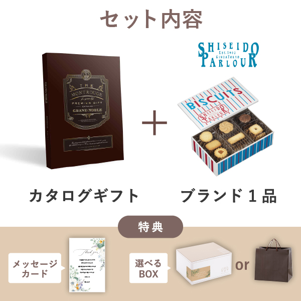 ブランド内祝いギフトセット(カタログギフト グランノーブル【50800円コース】モンルージュ+資生堂パーラー ビスキュイ 30枚入)|内祝い・お返しギフトならPIARY(ピアリー)