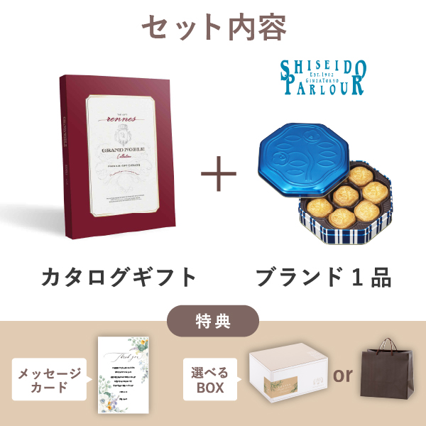 ブランド内祝いギフトセット(カタログギフト グランノーブル【4800円コース】レンヌ+資生堂パーラー 花椿ビスケット 24枚入)|内祝い・お返しギフトならPIARY(ピアリー)