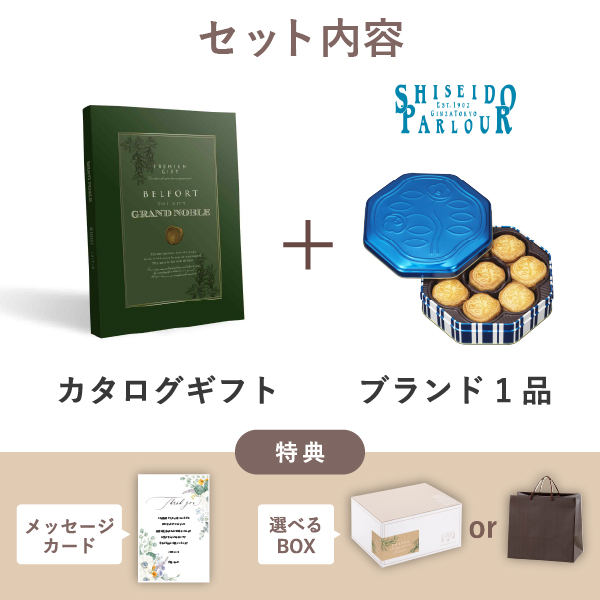 ブランド内祝いギフトセット(カタログギフト グランノーブル【8800円コース】ベルフォール+資生堂パーラー 花椿ビスケット 24枚入)|内祝い・お返しギフトならPIARY(ピアリー)