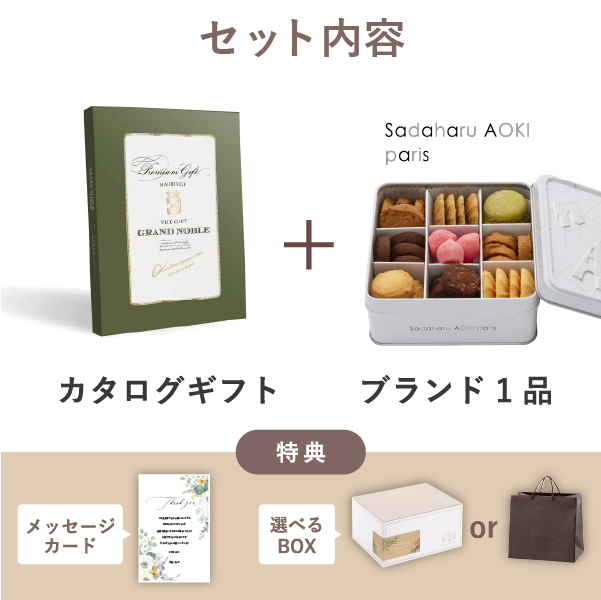 ブランド内祝いギフトセット(カタログギフト グランノーブル【10800円コース】モブージュ+サダハル アオキ パリ コフレ アソーティモン ドゥ ビスキュイ ドゥミ)|内祝い・お返しギフトならPIARY(ピアリー)