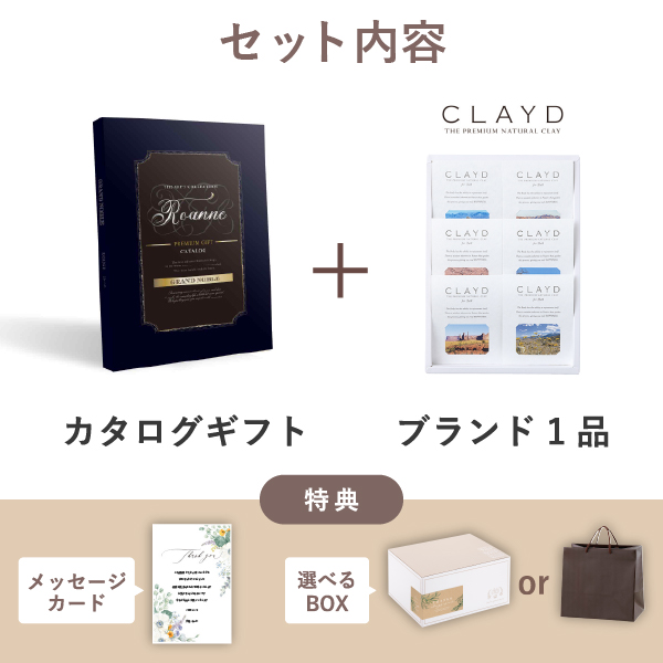 ブランド内祝いギフトセット(カタログギフト グランノーブル【3800円コース】ロアンヌ+CLAYD(クレイド) ワンタイムギフト)|内祝い・お返しギフトならPIARY(ピアリー)