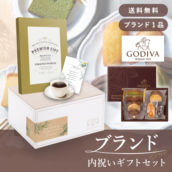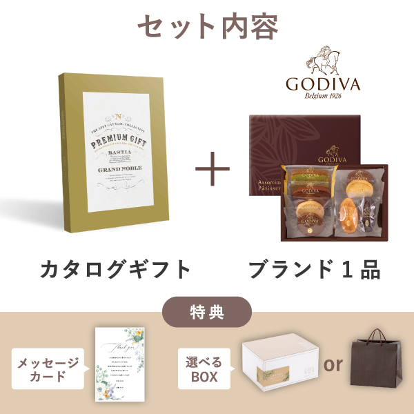 ブランド内祝いギフトセット(カタログギフト グランノーブル【4300円コース】バスティア+GODIVA パティスリーアソートメント8個入)|内祝い・お返しギフトならPIARY(ピアリー)