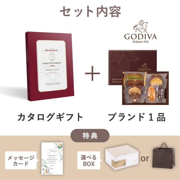 ブランド内祝いギフトセット(カタログギフト グランノーブル【4800円コース】レンヌ+GODIVA パティスリーアソートメント8個入)|内祝い・お返しギフトならPIARY(ピアリー)