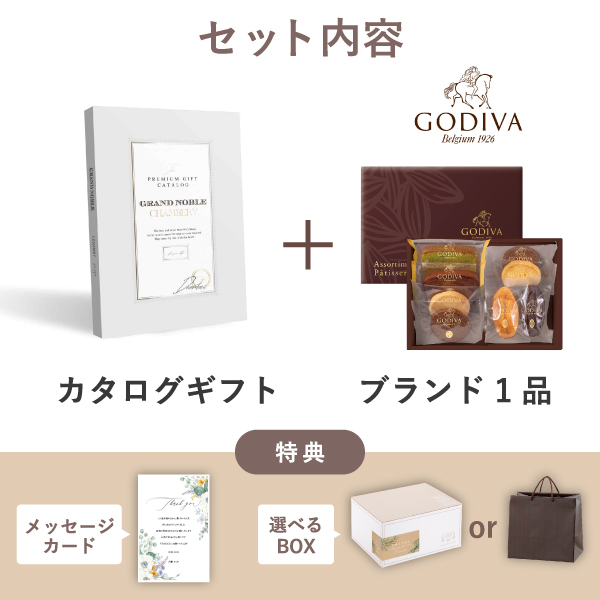 ブランド内祝いギフトセット(カタログギフト グランノーブル【15800円コース】シャンベリ+GODIVA パティスリーアソートメント8個入)|内祝い・お返しギフトならPIARY(ピアリー)