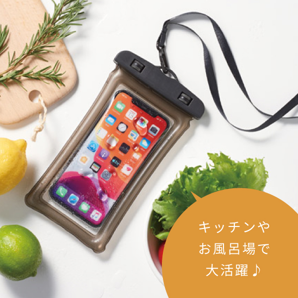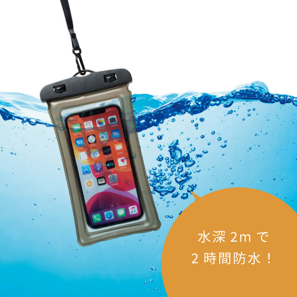 水深2Mで2時間防水の「防水特級IPX8」取得。またフチの空気層で水にも浮かぶ優れもの。アウトドアでも安心の防水スマホポーチです。
