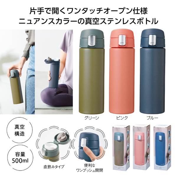 【49%OFF】【大量購入歓迎!】ワンタッチ真空ステンレスボトル500ml(名入れ対応可)|ノベルティグッズ・粗品・記念品・販促品ならPIARY(ピアリー)
