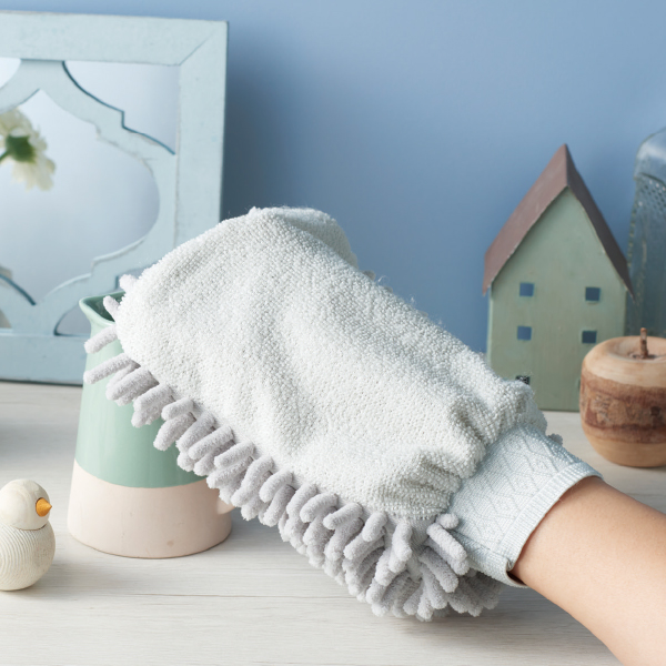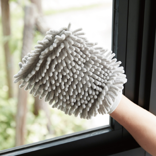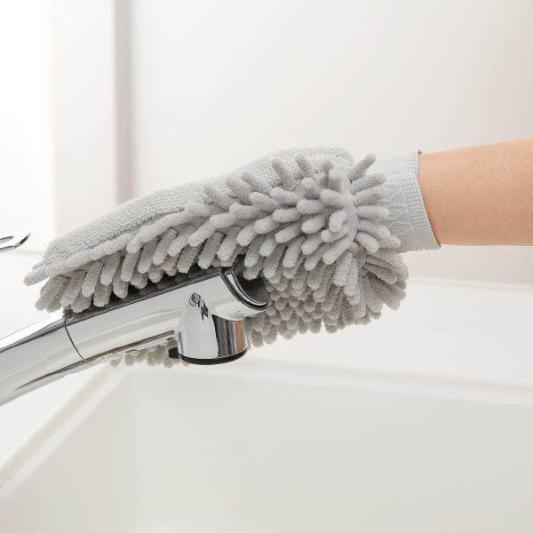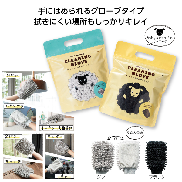 手にはめて使う、もこもこ毛足のお掃除クロス。隙間汚れやカーブ部分のお掃除に便利。目を惹くかわいい羊パッケージもポイントです。