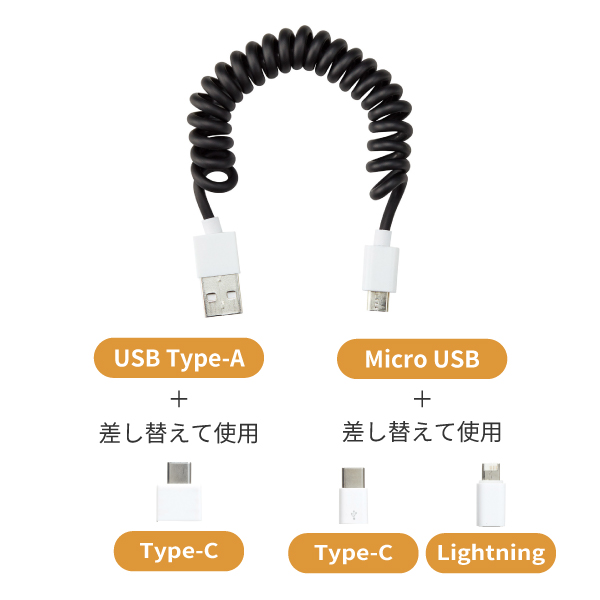 【49%OFF】ケース付マルチチョイスUSBコイルケーブル(名入れ対応可)|ノベルティグッズ・粗品・記念品・販促品ならPIARY(ピアリー)