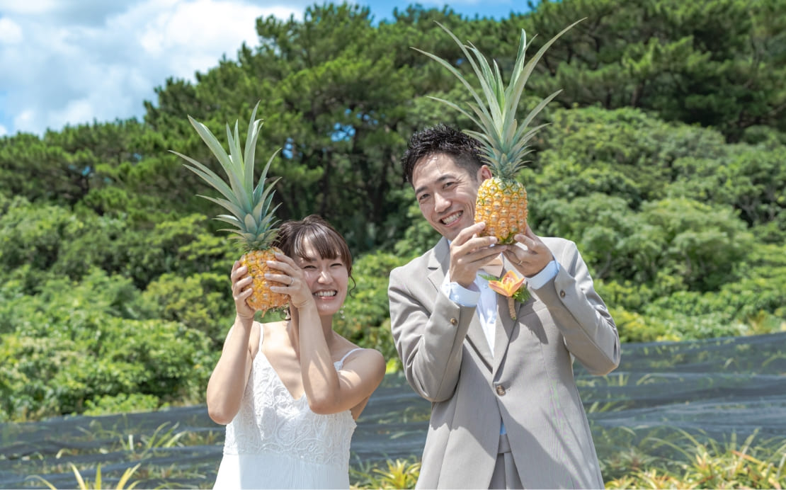 素敵な写真を撮るのは当たり前。撮影スポットの歴史や島の美味しいご飯屋さん情報、移動中にサトウキビジュースやアイスを買いに寄ったり、島をまるっと観光としても楽しめます。そして、フォトウェディングにパイナップル収穫などのアクティビティが融合しているツアープランも用意されているので、1度で3度おいしい。まさにトータルアクティビティ。