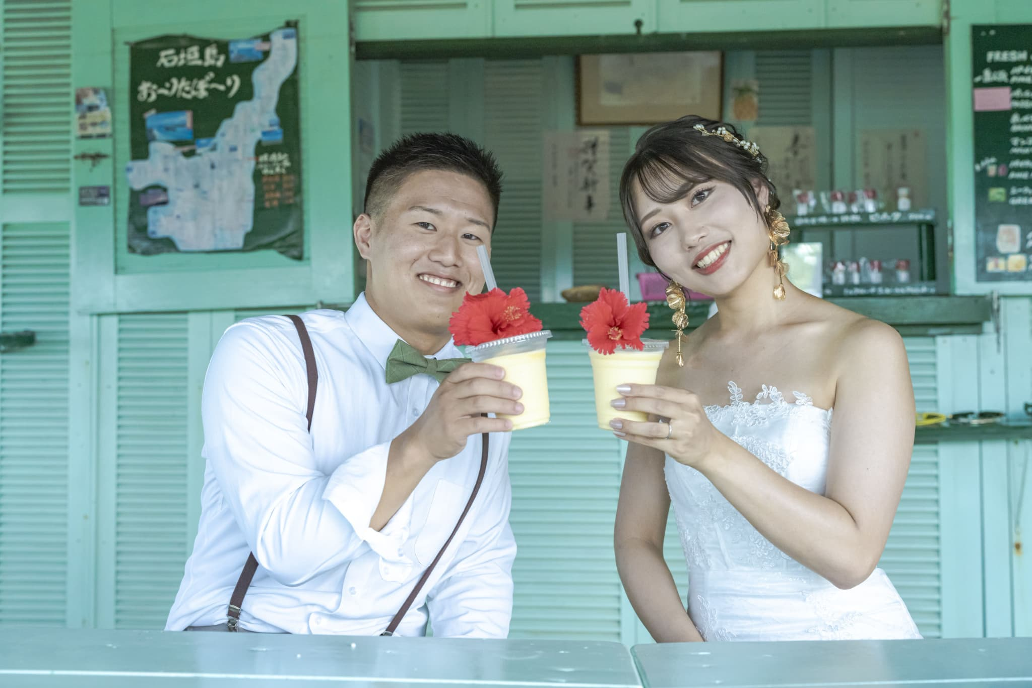 素敵な写真を撮るのは当たり前。撮影スポットの歴史や島の美味しいご飯屋さん情報、移動中にサトウキビジュースやアイスを買いに寄ったり、島をまるっと観光としても楽しめます。そして、フォトウェディングにパイナップル収穫などのアクティビティが融合しているツアープランも用意されているので、1度で3度おいしい。まさにトータルアクティビティ。