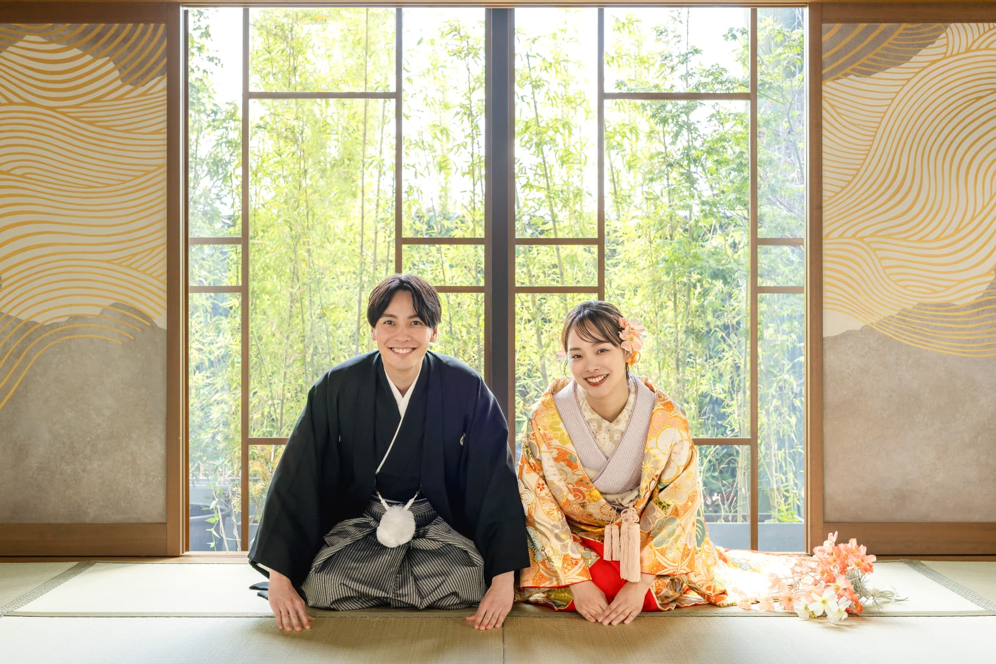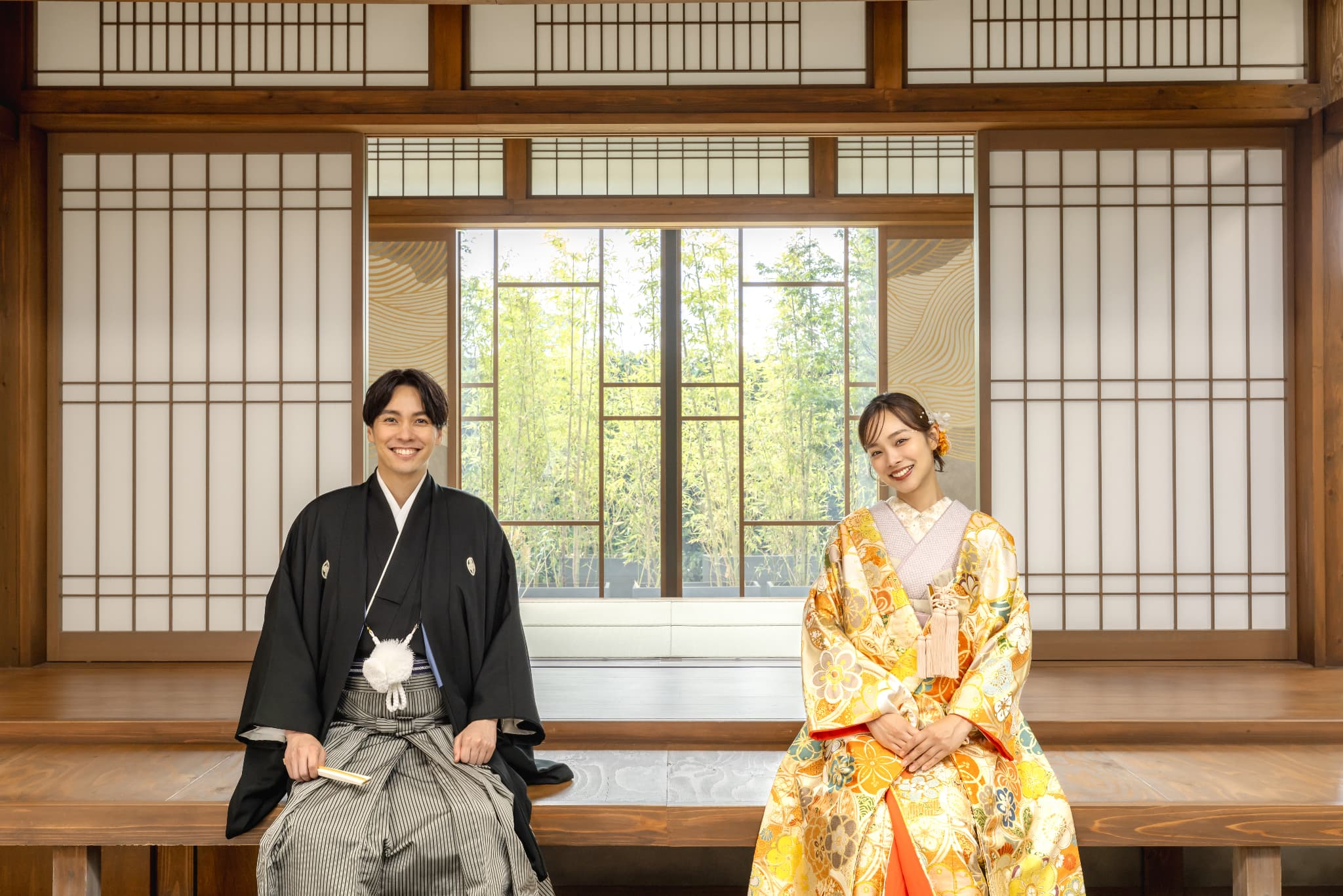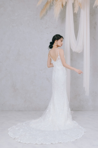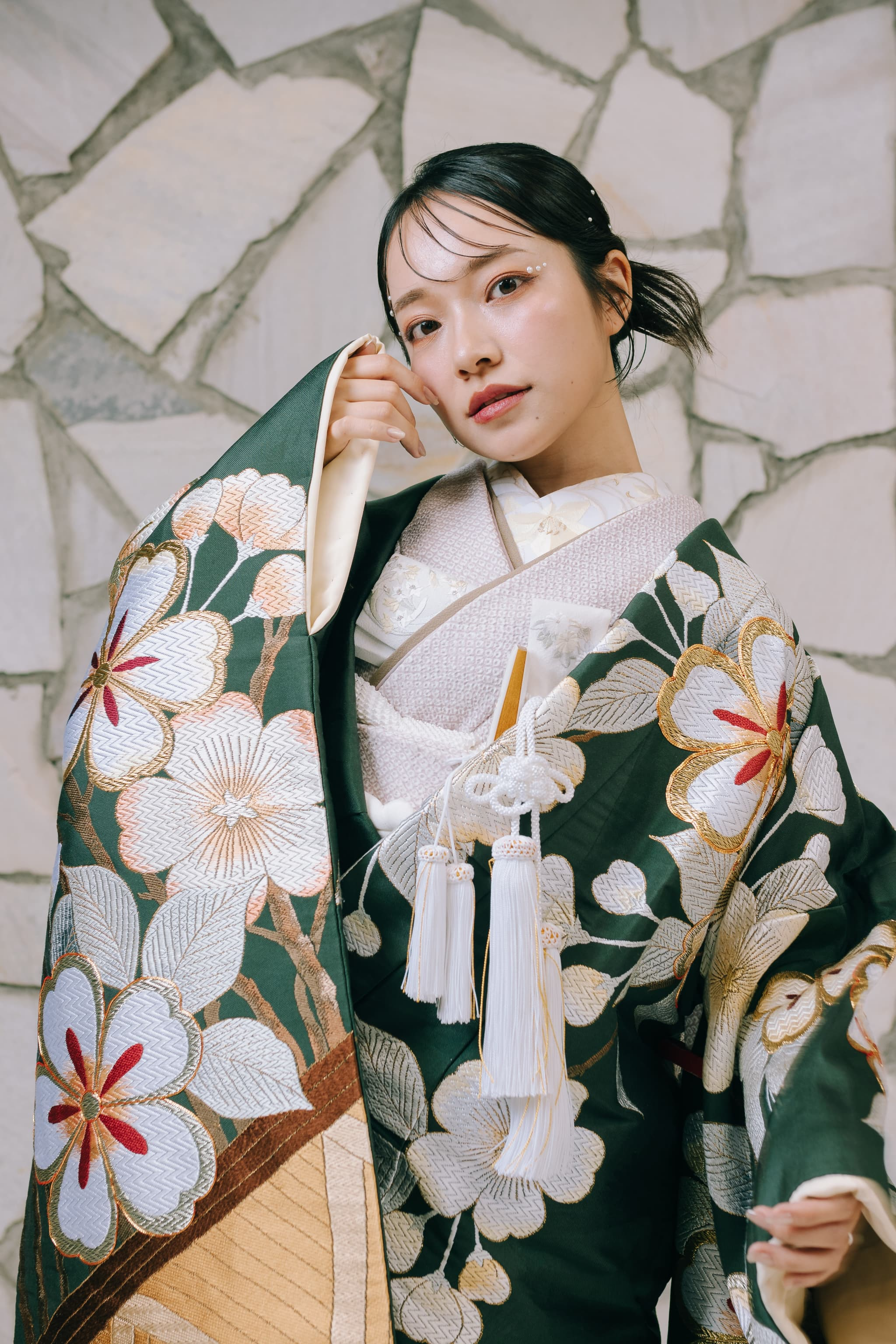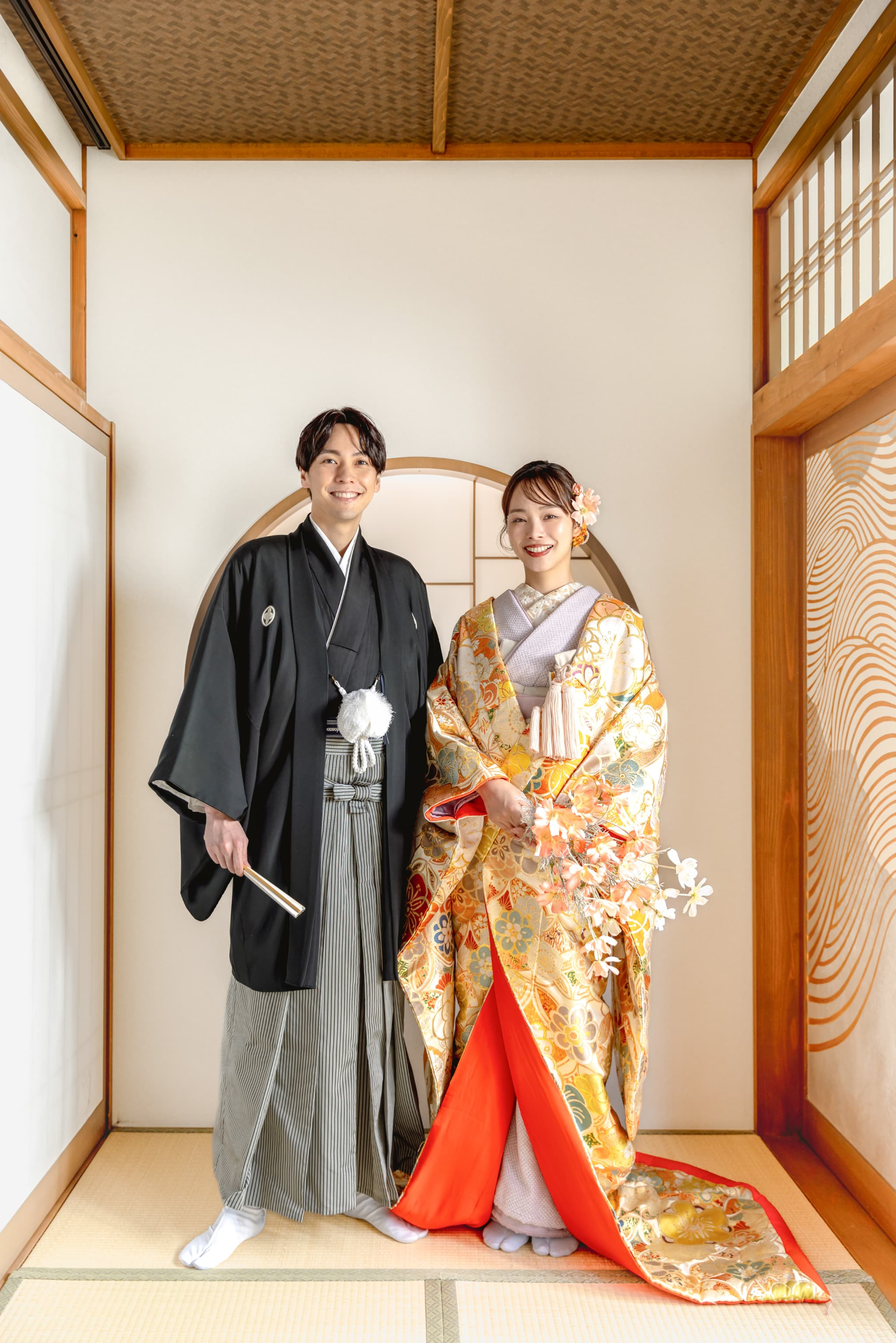 花嫁の象徴とされるウェディングドレスや和装の打掛。肌の色や体型、また、なりたいイメージに合わせて衣装選びをサポートします。
