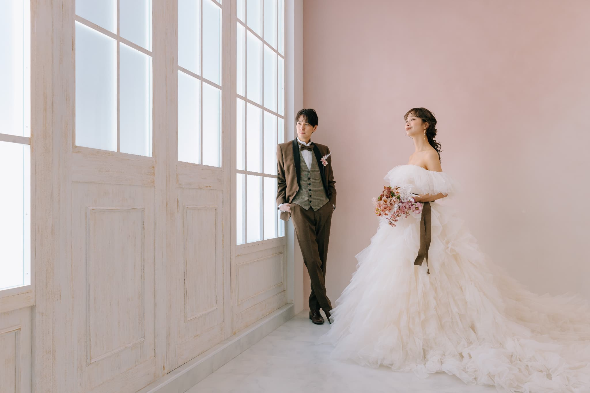 映画の広告を制作するように、ナチュラルな表情や非日常的な雰囲気を表現したウェディングフォトをつくり上げることが私たちの使命です。どこのスタジオよりも花嫁様に喜んでいただけるものを、自慢の演出力で叶えます。幸せをたくさん閉じ込めた写真作品づくりをバックアップ。