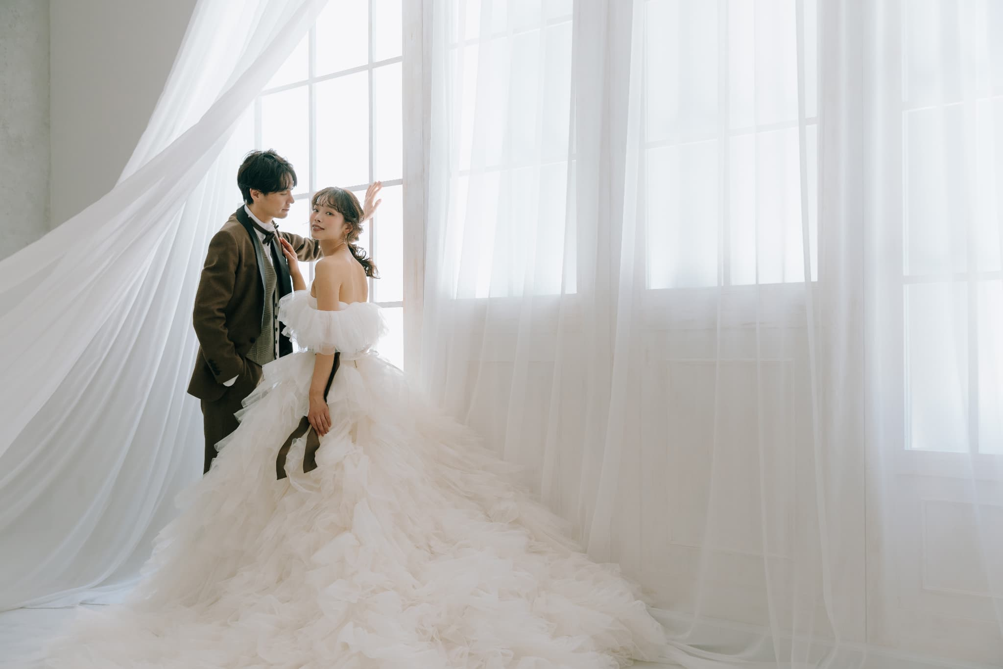 ロケーション選定や小物づかいによる作り込み、ベールを美しくなびかせたシチュエーションづくりなど、まるで映画や広告のようなシーンをご提案します。