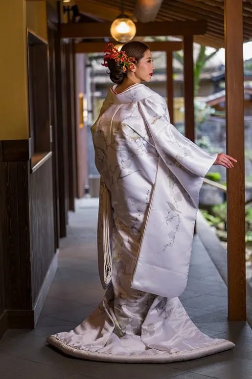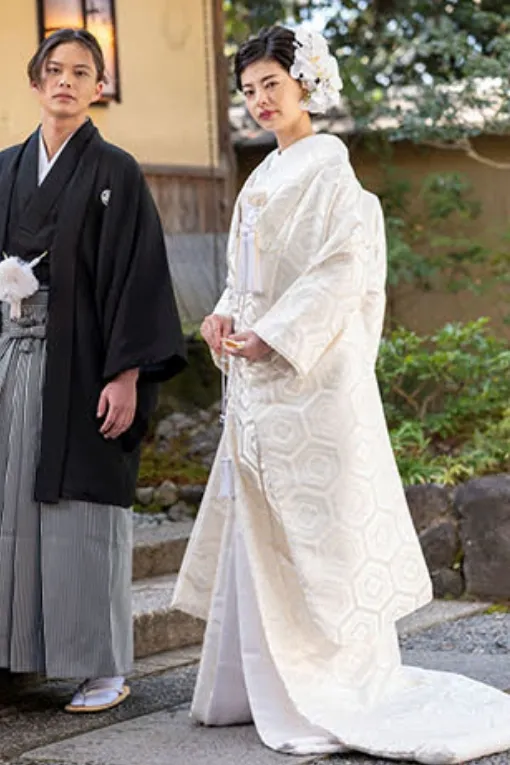 Grace Shigaでは、老舗提携衣裳店から厳選された本物の花嫁衣裳をご提供しております。繊細な技術と歴史が息づく衣裳で、格式と優雅さを纏ったお姿を演出します。さらに、京都の花街で信頼を得る熟練のかつら師によって仕上げられる京かつらを使用。新婦様のお顔立ちや個性に合わせたセミオーダーで、唯一無二の美しさを引き出します。特別な一日を、心に刻まれる最高の姿でお迎えください。