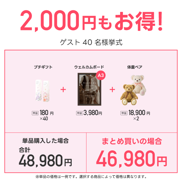 ゲスト40名分のプチギフト・ウェルカムボード・両親プレゼント【ウェイトベア】をまとめて購入で何と2,000円OFF!!