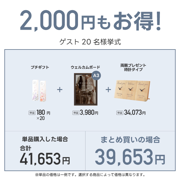 ゲスト20名分のプチギフト・ウェルカムボード・両親プレゼント【時計タイプ】をまとめて購入で何と2,000円OFF!!