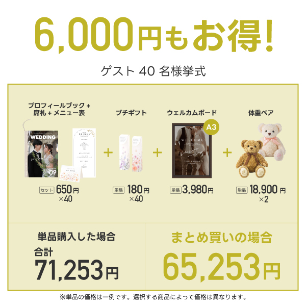 | プロフィールブック(席次表付き8ページ) └ 選べる商品一覧はこちら > | 40名様分 |