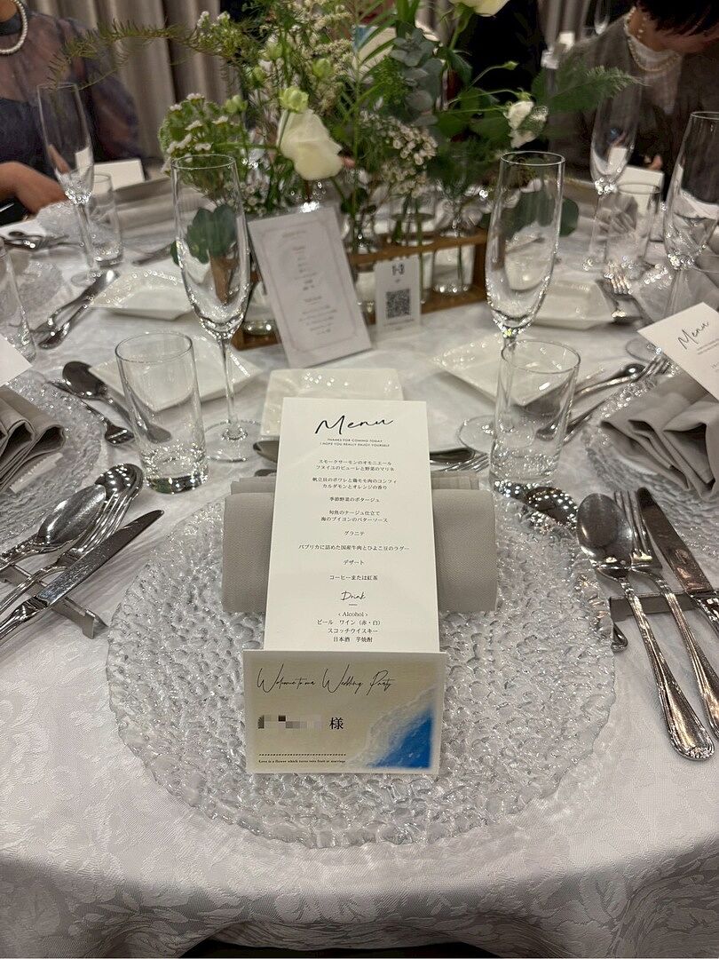 メニューが長く、席次表におさまらなかったため、こちらをお願いしました。とってもシンプルなので、テーブルコーディネートの邪魔にならずでよかったです。