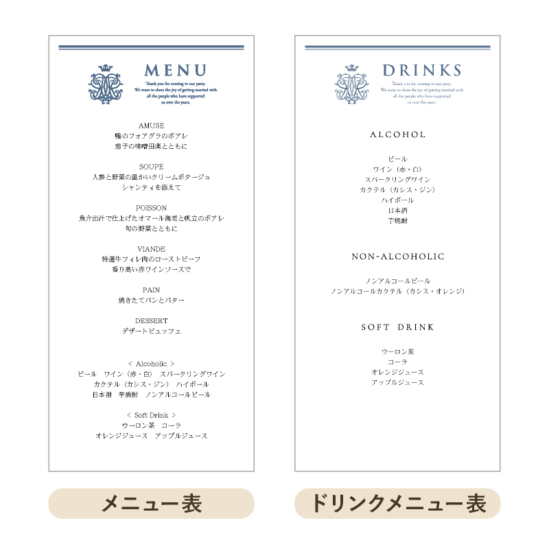 ロイヤルクイーンズ コバルトネイビー 結婚式 メニュー表|結婚式 メニュー表ならPIARY(ピアリー)