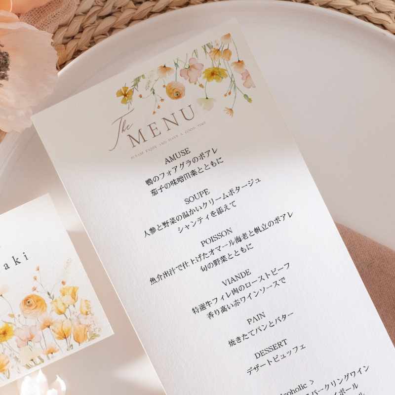 エアリーブーケ-(ラナンキュラスオレンジ)結婚式 メニュー表|結婚式 メニュー表ならPIARY(ピアリー)