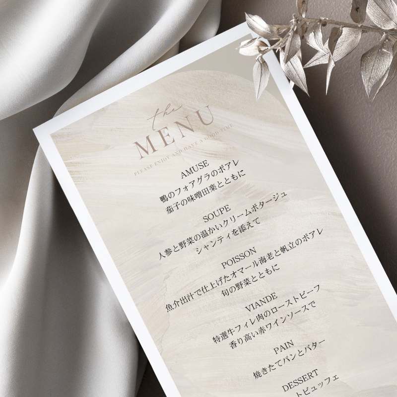 披露宴のお食事メニュー表の作成時に利用しました。当日のメニューをPDFにしておいて文字をコピー&貼り付けて、少しレイアウトを選んであっという間に出来てストレスゼロでした!面倒くさがりな夫婦でもお洒落に出来ちゃうのでおすすめです!