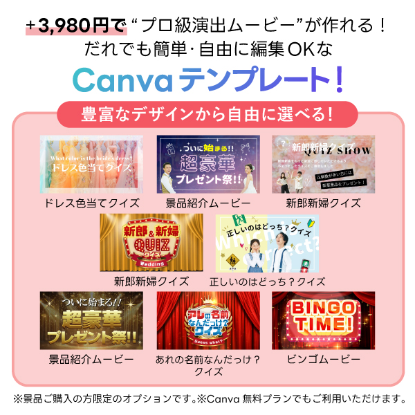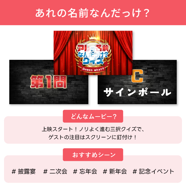 クイズ・余興ムービーテンプレート 8種セット【景品ご購入者様用】|結婚式ムービーならPIARY(ピアリー)