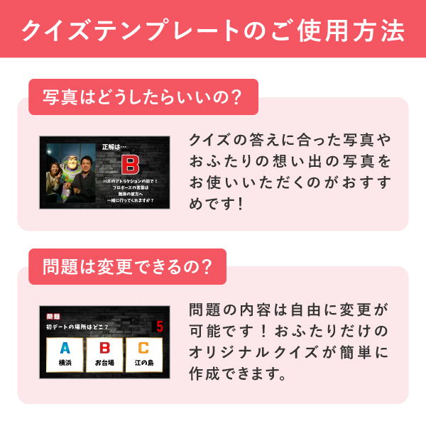 新郎新婦クイズ(シアター)【自作ムービー】クイズ・余興ムービーテンプレート|結婚式ムービーならPIARY(ピアリー)