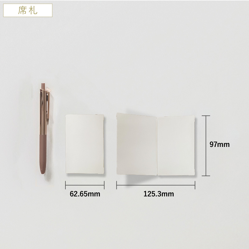 席次表と揃えて購入しました。 男性用にシックカラー、女性用にパステルカラーと色分けもできてよかったです。 ミシン目で切り取るので、紙の端っこが少し気になりましたが、ハサミで少し処理をすれば問題ありません。 プリンターは後ろトレイで、と指定されていますが、前面給紙タイプでも問題なく印刷できました!