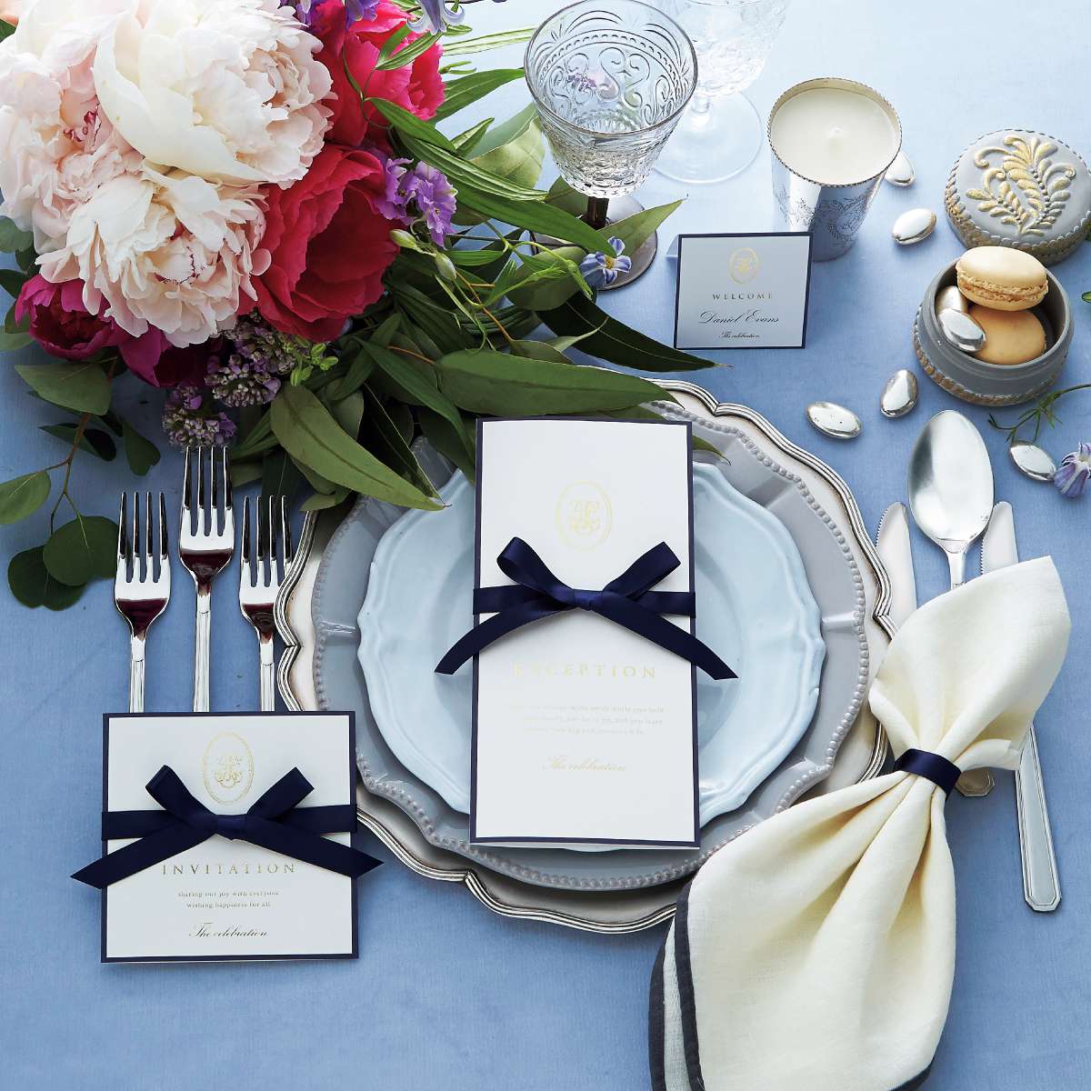 席次表とセットで購入しました。 ネイビーとゴールドの色合いが高級感があって気に入りました。 名前の表記も漢字か英字(?)で選べて良かったです。