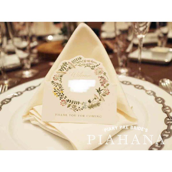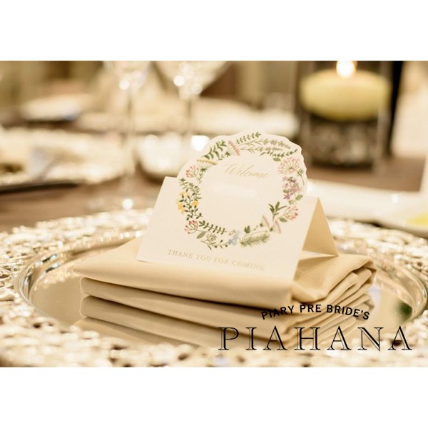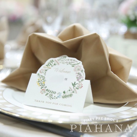 私たちの披露宴会場のコンセプトが、葉っぱとか緑を基調としたものだったので、すごくピッタリのデザインが見つかって良かったです!リーフのところも、ただ印刷されてるだけじゃなくて、少しプクっとしていてデザイン性のある席札でした!ありがとうございました!