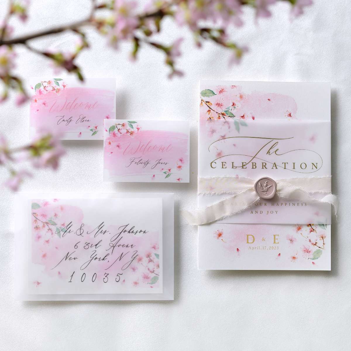 トレーシングペーパーで透け感がありとても可愛かったです!白、黄、ピンク、青とグリーンが入っていて、テーブルが華やかになりました。同じデザインの席次表とセットで置いたので、ゲストからも好評の席札でした!