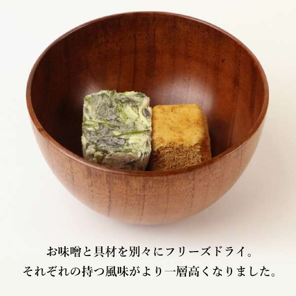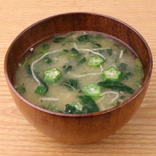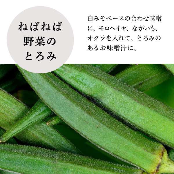 体にやさしいねばねば野菜のとろみと味噌の旨みが抜群の相性です。お味噌と具材を別々にフリーズドライする「ニコニコ製法」により、それぞれの持つ風味がより一層高くなりました。