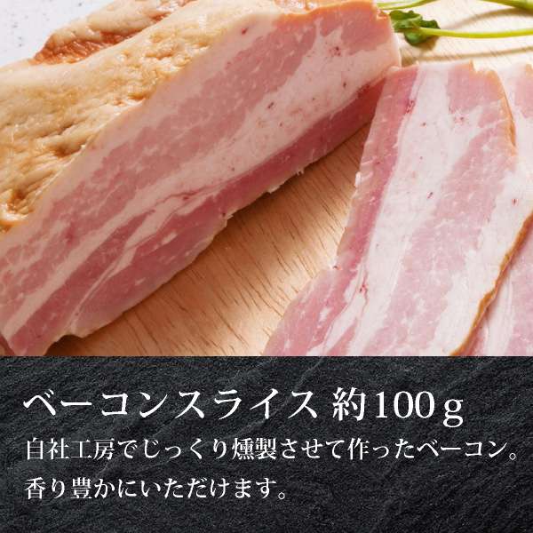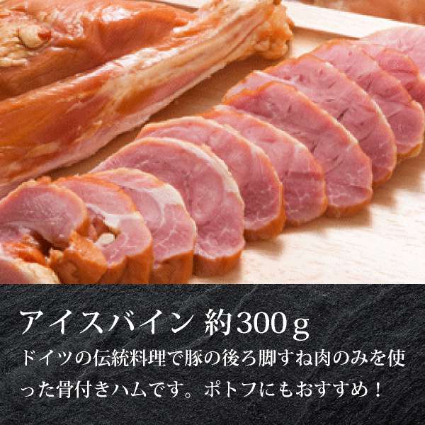 | 内容 | ローステキカツ(約240g)×2枚、肩ロース薄切り(約180g)、バラしゃぶしゃぶ用(約300g)、あらびきウインナー4本入り×1パック、ベーコンスライス(約100g)、アイスバイン骨付きハム(約300g) |