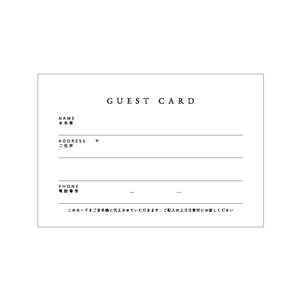 ゲストカード方式の芳名帳は、事前にカードを招待状に同封して郵送します。ゲストに自宅で記入していただき、受付で渡すだけのカンタン方式。何かと慌ただしい当日の受付もスムーズに行えます。