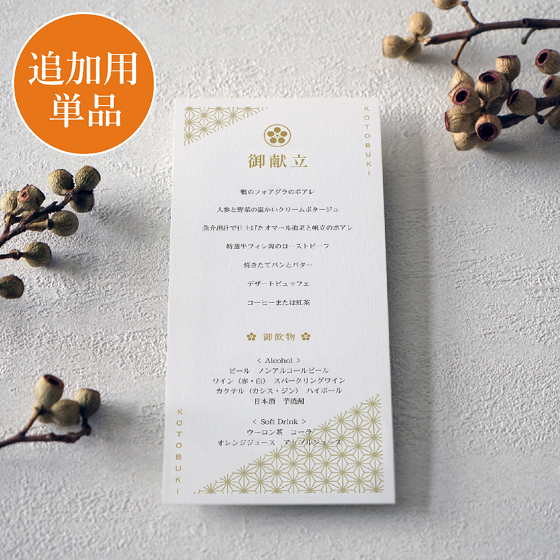 【追加用】黄金千里 結婚式 メニュー表|ペーパーアイテムならPIARY(ピアリー)