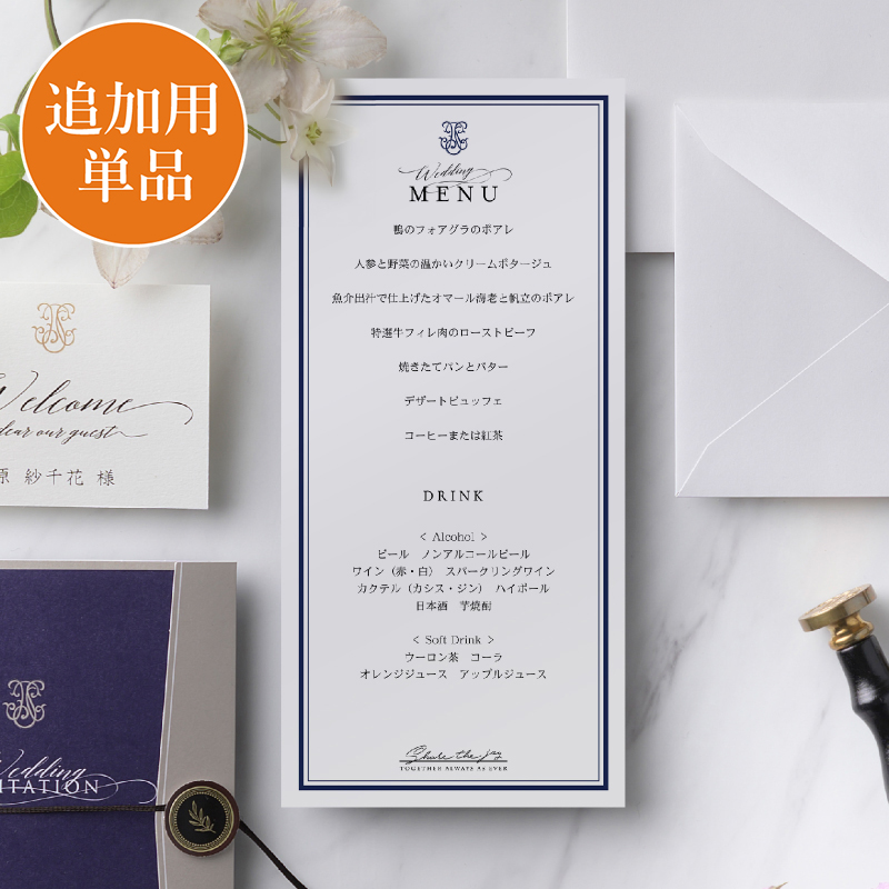【追加用】エターナ ネイビー 結婚式 メニュー表 |ペーパーアイテムならPIARY(ピアリー)