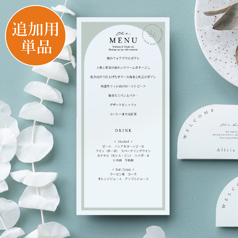 【追加用】ニュアンセスアーチ ピスタチオグリーン 結婚式 メニュー表 |ペーパーアイテムならPIARY(ピアリー)