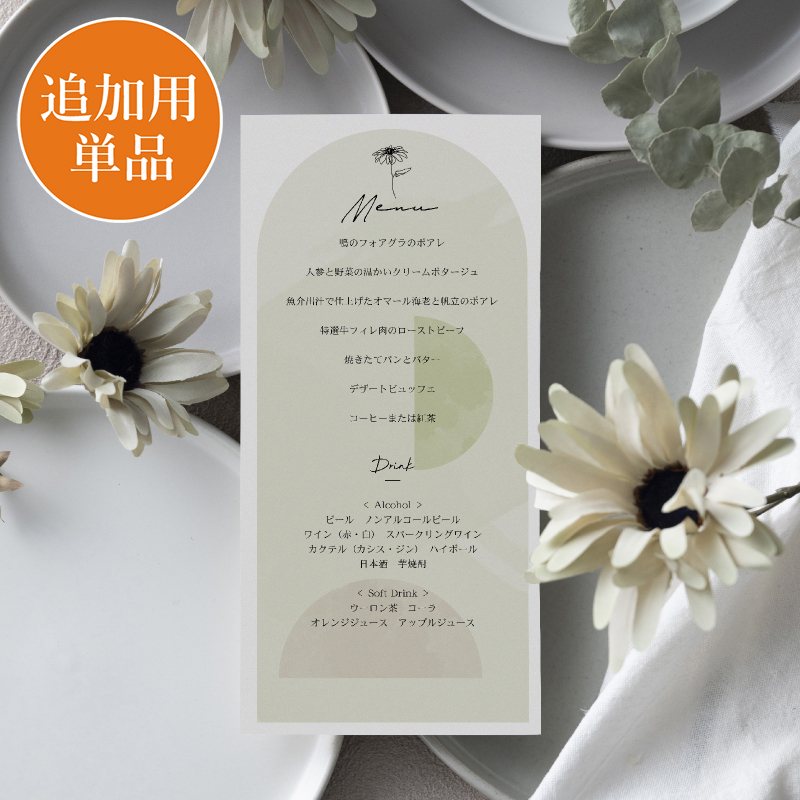 【追加用】シアーフロアート ミスティグリーン 結婚式 メニュー表|ペーパーアイテムならPIARY(ピアリー)