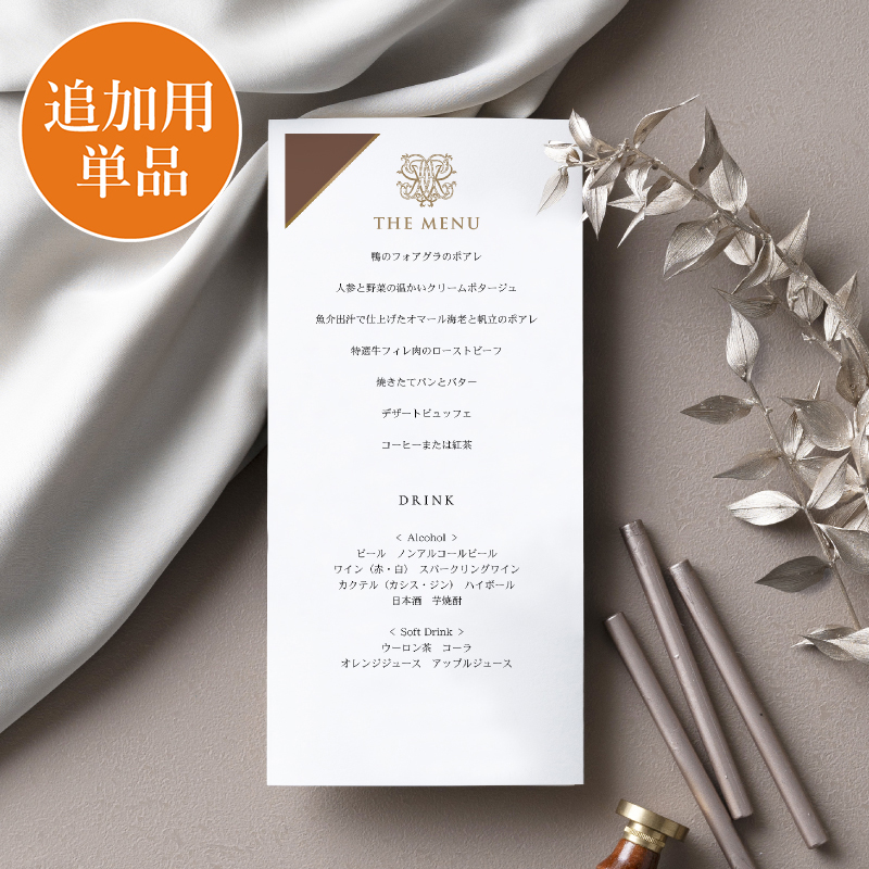 【追加用】ノーブルクイーンズ ベイクドブラウン 結婚式 メニュー表|ペーパーアイテムならPIARY(ピアリー)