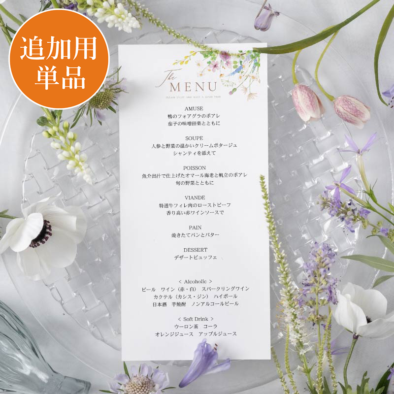 【追加用】エアリーブーケ-(ミックスフラワー)結婚式 メニュー表|ペーパーアイテムならPIARY(ピアリー)