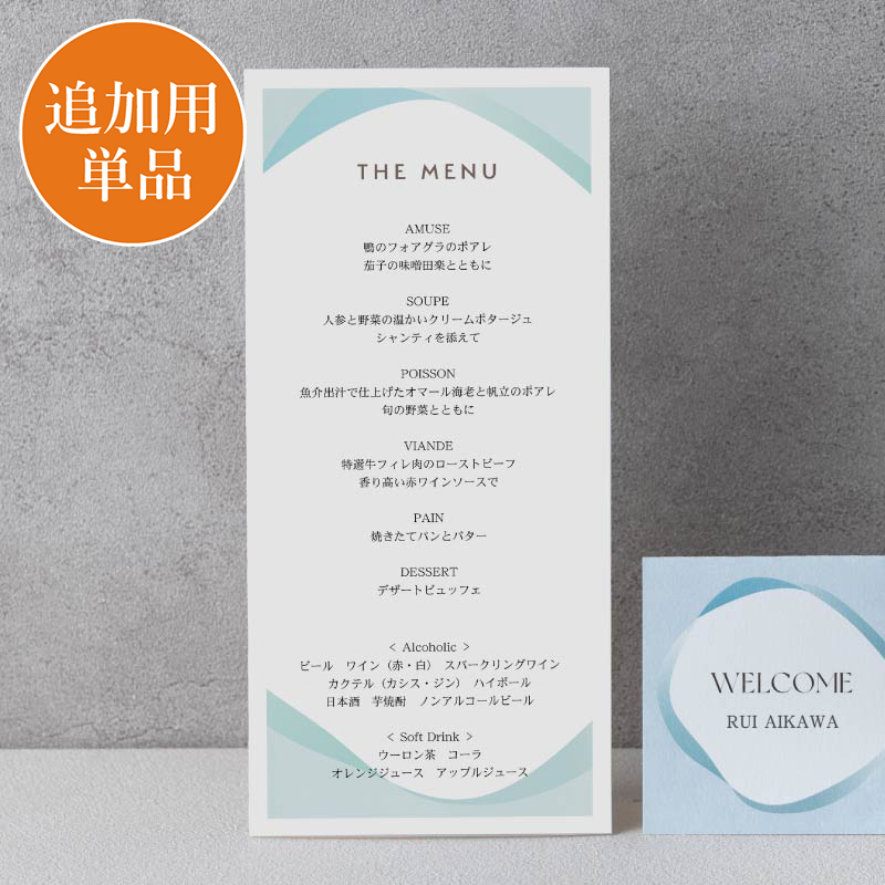 【追加用】ミスティ-(アイスブルー)結婚式 メニュー表|ペーパーアイテムならPIARY(ピアリー)