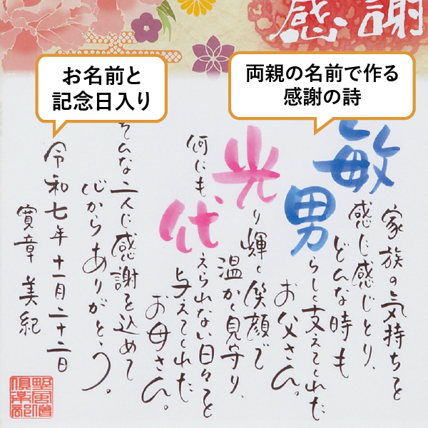 普段はなかなか言えない感謝の気持ちを、大切なご両親のお名前を織り込んだポエムで伝えませんか?
