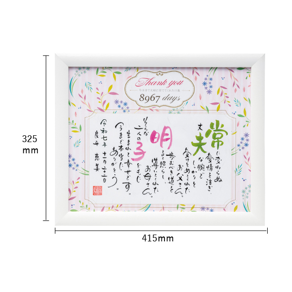 | 備考 | ※生まれてから記念日までの日数と、おふたりの名前と記念日が入ります。 ※壁掛けタイプです。 |
