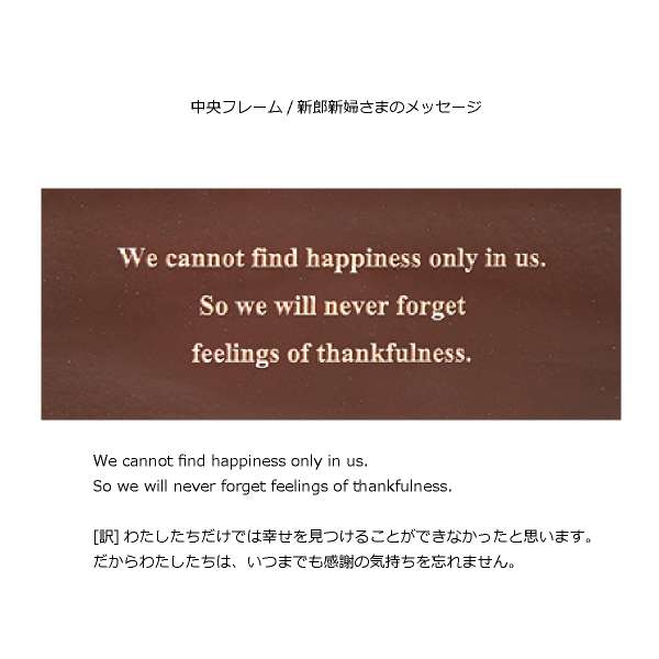 | 無料特典 | ブライズレター1セット(レターケース、専用レター5枚)、子育て感謝状(A4サイズ)(※フレームは付きません。)、サンクスチャペルムービーの中から1つお選びいただけます。 |
