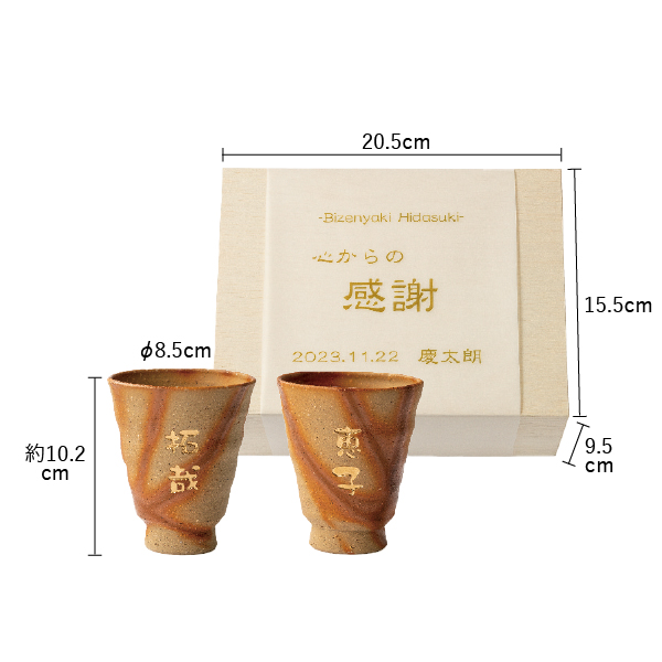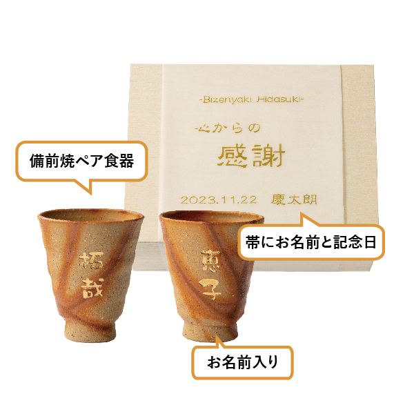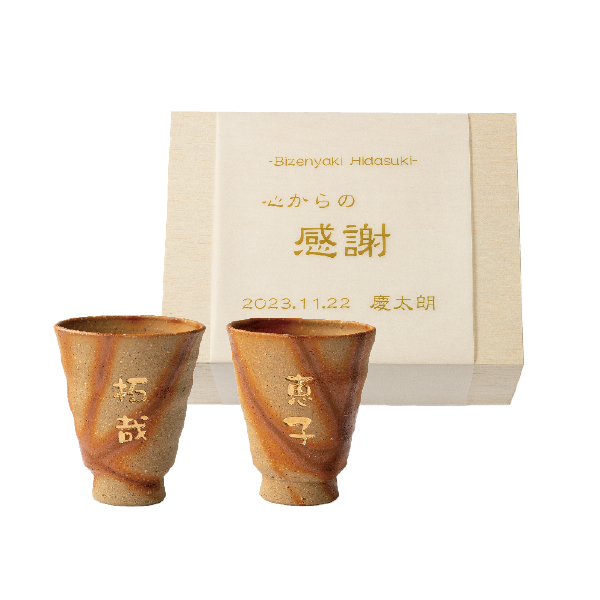 【20%OFF】名入れ備前焼ひだすきペアカップ|両親プレゼントならPIARY(ピアリー)