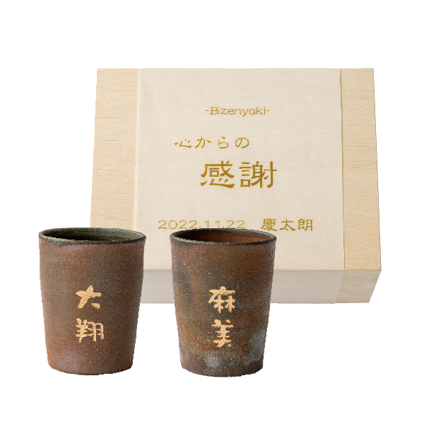 【20%OFF】名入れ備前焼ペア湯のみ|両親プレゼントならPIARY(ピアリー)