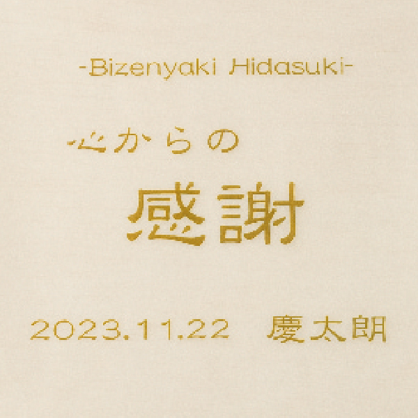 使えば使うほどに色や艶の美しさが増す備前焼に、金色の名入れを施した特別な送りものです。