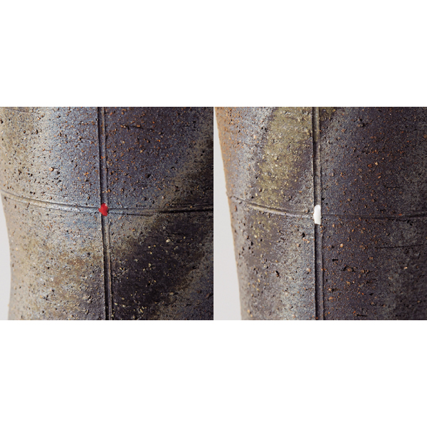 信楽焼を代表する「卯山窯」。縦の線と横の線が結びつく場所に「紅白」のポイントが目を引きます。