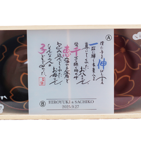 結婚式の両親プレゼントはもちろん、成人式などの節目へ贈るプレゼントや出産祝いのメッセージを入れるのにもおすすめです!