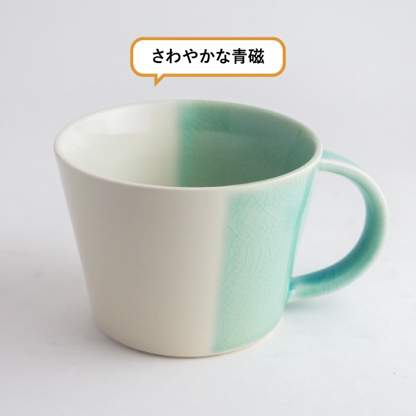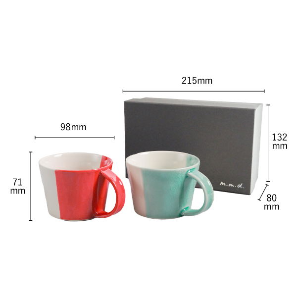 | 内容物 | マグカップ2個セット 「朱」×1「青磁」×1 商品サイズ/直径98×高さ71mm(容量300ml) |